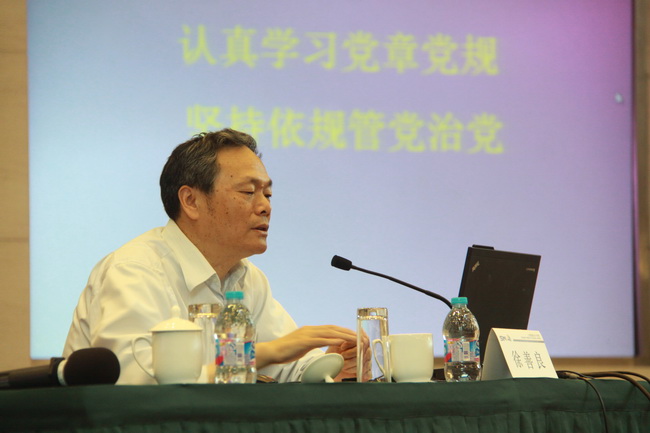 徐书记依次从正确把握党章党规的内涵、党内法规建设的主要成就和执行过程中存在的问题,以及学习党章党规的重要意义等三个方面内容为党员干部们进行了系统的知识梳理,用最平实、易懂的语言对党章党规的定义与分类进行了解读、对建党以后特别是十一届三中全会以来党内法规建设的成就和执行过程中的问题与不足进行了详述。
