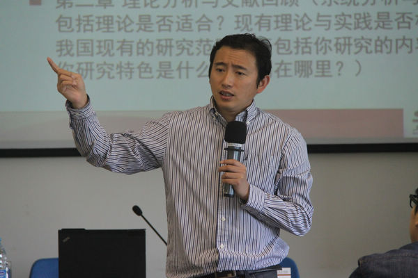 最后,刘老师把舞台让给大家,让同学们分组对两篇论文进行全方位分析评价,从选题到研究内容规范性意义等方面都可以可出相对应的意见。并让大家上台分享自己的选题想法。同学们兴趣高涨,纷纷各抒己见。感谢刘老师不仅仅是教导了我们《论文撰写专题》这门课,让我们受益匪浅。更是教导了我们看问题的角度和独立思考的意识,拓展了专业道路和人生道路的视野。我们会永远铭记刘老师的话,勉励我们多读书,多丰富自己,以从容应对在今后的学习和生活中所遇到的任何困难。