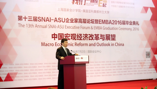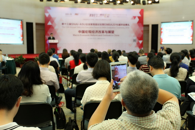 为更加充分地认识当前的经济和改革形势,学院特别邀请到全国工商联副主席、上海市工商联主席王志雄、全国政协委员、政协经济委员会委员、中国财政学会顾问贾康分别以“经济变化之分析与展望”、“供给侧改革”为题做主旨演讲。论坛由上海国家会计学院党委副书记、副院长刘勤教授、美国亚利桑那州立大学凯瑞商学院院长Amy Hillman教授分别致辞,合作项目部主任汤超义主持。近三百位各界校友、同学与会。
