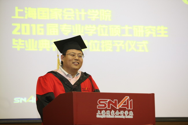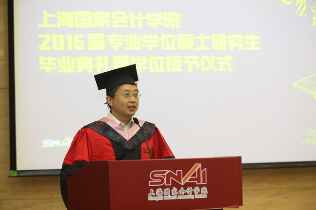 (撰稿:赵茉莹;摄影:角度摄影)6月29日下午,上海国家会计学院2016届研究生毕业典礼暨学位授予仪式在第三教学楼150人报告厅隆重举行。上海国家会计学院党委书记、院长李扣庆、党委副书记、副院长刘勤、党委委员、副院长卢文彬、党委委员、院长助理易宏勋出席本次典礼,典礼仪式由研究生部副主任郑德渊主持。