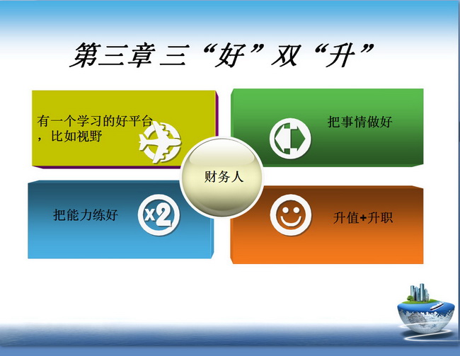 工作中,很多时候会得不到认可,感觉得到的总比付出的少。金久铭称,把自己的本分工作做好做扎实,用态度和事实去证明自己,进而得到别人的认可与尊重。不同人的语言、思维模式、背景、目标、年龄阶层认知能力都会有变化,我们要把财务的专业知识“白话”,跟不同阶层的人应对和交流,让他们按照财务工作的要求配合工作,这是个长期的工程需要财务人员自己“修炼”,就离升值+升职更近了。