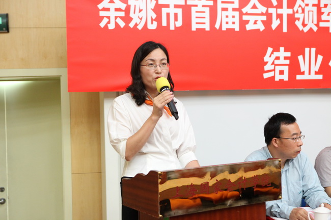 对于44名全体学员来说,结业不是终点,而是新的开始。在即将踏上新的征途之时,大家感慨万千,优秀学员魏红代表全体学员作结业感言。历经三年的锻造,她由衷感到学习的价值所在,所以,借此次机会,她概括地用“感谢”、“感动”、“感悟”六字真言表达了全体学员的心声:心怀感恩,作为企业的财会骨干,在余姚市财政局的凝聚下,大家获得了提升的平台,在上海国家会计学院的培养下,领略了知识的浩瀚。心存感动,三年前,44名拥有会计梦想的学员相聚一起,在青草依依的校园延续不老青春,重燃会计的抱负。大家在学习、交流、共勉中度过三年时光,成为彼此最好的朋友、兄弟、姐妹。感悟责任,高端会计人才的发展是一条毕生学习之路,大家选择了这条路,就需要用心走完它,并能站在更高更新的平台发展自我,为经济社会贡献自己的力量。