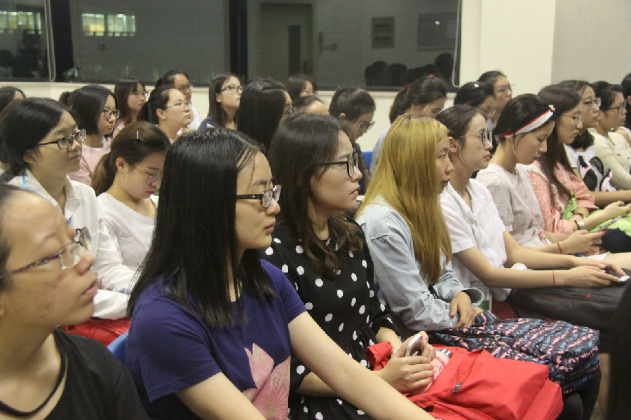 所有2016级志愿者们分为两个小组,分别由胡晓栋老师和赵茉莹老师主持讨论。在讨论中大家各抒己见,分享了之前的志愿者活动经验,提出了一些对当前志愿者工作的建议,以及对志愿者活动的未来向往。很多志愿者们在大学期间已经积累了丰富的志愿者工作经验,例如山区支教、养老院献爱心、关注留守儿童、地铁引导和服务、义务家教等等。他们对现有的志愿活动提出的建议包括丰富志愿者活动类型,地铁志愿者地点变更到虹桥火车站等人流量较密集的地方,和公益机构民间组织合作举行衣物捐赠和义卖活动。与此同时,他们也提出了一些研究生期间志愿者工作的期望,比如国家会展中心志愿者一些和之前不同类型的志愿者活动。