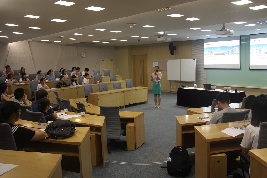 签到完成后,在三教马一教室,参观者们欣赏了SNAI宣传片和全日制研究生生活集锦。上午10时整,开放日宣讲会正式开始。SNAI研究生部招生办公室主任肖老师为大家分析了考研的专业选择问题,并从学院师资、教学、培养特色及奖助措施等方面认真讲解了为什么SNAI值得大家报考。宣讲会持续一个小时,肖老师的讲解令与会者更加明确了考研方向,也更加了解了SNAI研究生教育的魅力所在。