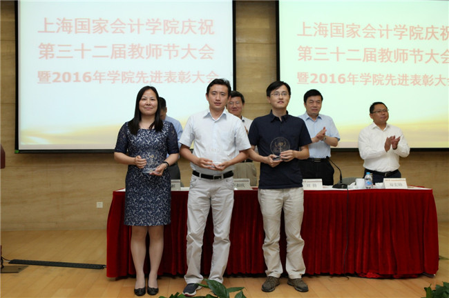 延续近年教师节的传统,院领导向在院忠诚服务十周年的员工们颁发水晶奖座,他们与学院风雨同舟、倾情奉献、见证了学院繁荣发展、为学院发展付出了美好的青春年华。信息部张敏军老师代表老员工们作了精彩发言。