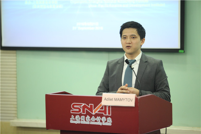 其后,教师代表黄长胤博士、学生代表2015级吉尔吉斯斯坦留学生阿迪和2016级安提瓜和巴布达的留学生安娜塔分别发言。黄长胤博士分享了2015级留学生教学的经验,建议新生在校期间,除了学习知识,更要学习创造知识的能力。他鼓励留学生们一要刻苦学习,不断鞭策自己;二要在学会从自己独特的角度思考问题的同时,积极参与团队讨论,形成团队共识;三要利用好学院这个了解中国财经的平台,多与来自中国各地的财经精英交流。黄博士欢迎留学生加入学院大家庭,希望大家在接下来的两年时间里,共同努力,产出新知识。两位留学生感谢中国政府,感谢商务部、教育部和财政部,感谢上海国家会计学院和亚太财经与发展学院,他们会珍惜在中国的宝贵时间,好好学习,归国后报效自己的国家。