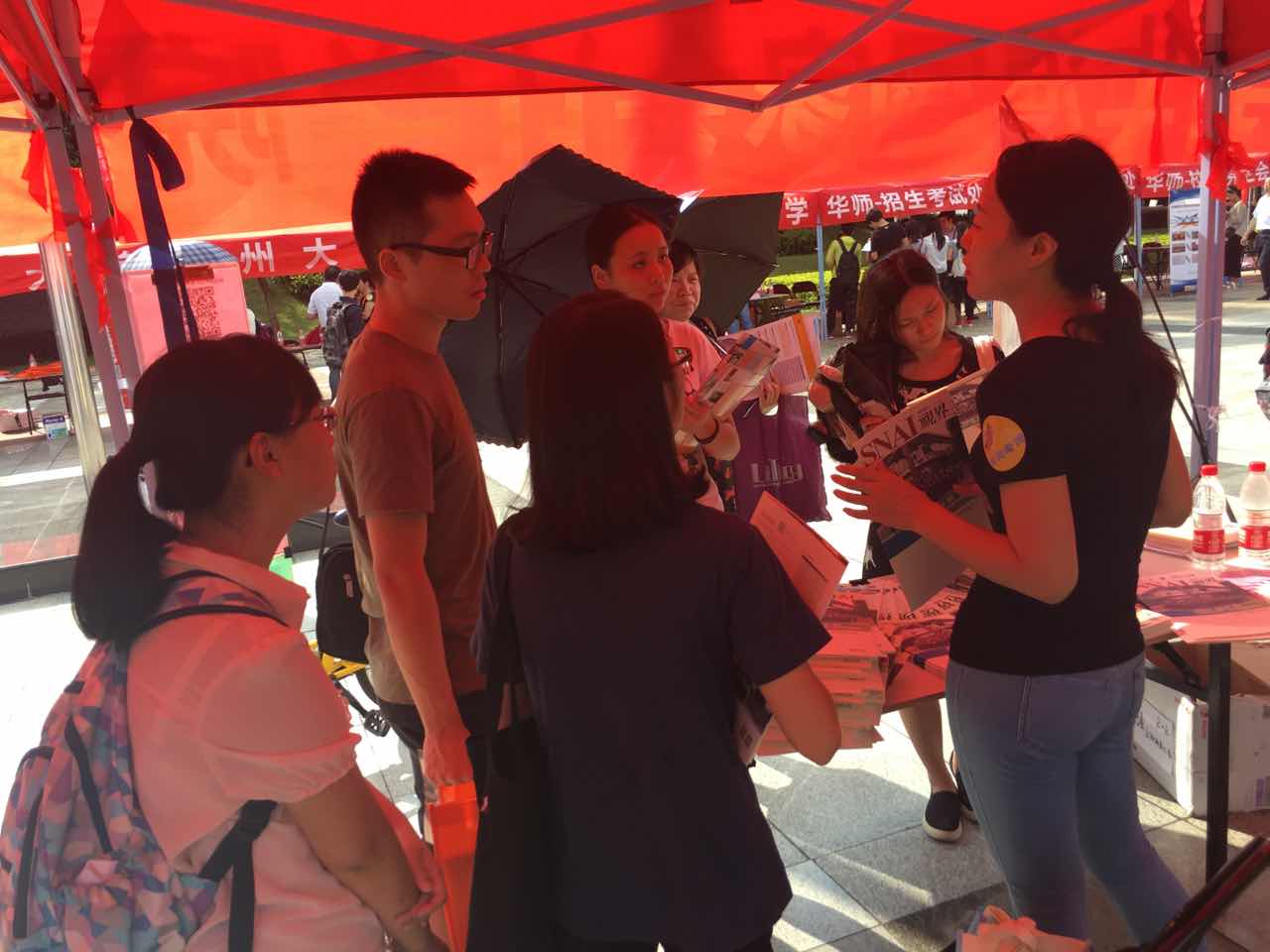 (撰稿/摄影 赵茉莹)为了更好地协助考生及家长了解我校2017年招生的最新政策与资讯,2016年9月18日,在主办方中国教育在线网的统一部署下,我院研究生部招生办公室主任肖舒羽老师和赵茉莹老师代表学院参加了在华南师范大学举行的广州站招生咨询会。