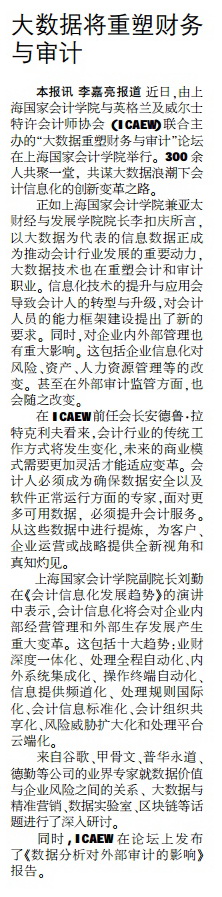 大数据将重塑财务与审计【中国会计报,2016年9月23日】
