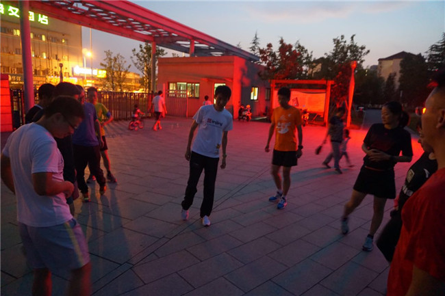 随后大家移步附近的闵行文化公园进行了一圈跑步中的交流,从准备的热身拉伸动作,到跑步过程中每个人姿势的调整,以及体力的分配,跑后的拉伸等,光光姚全程进行了指导;由于每个人的速度不同,到拐弯处光光姚直到等待最后一位校友通过才放心前行。