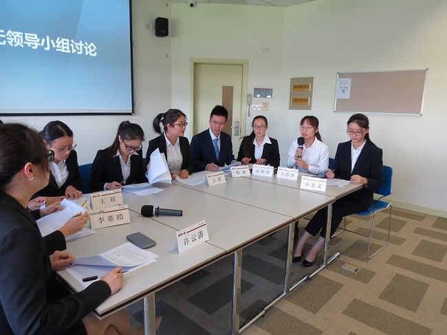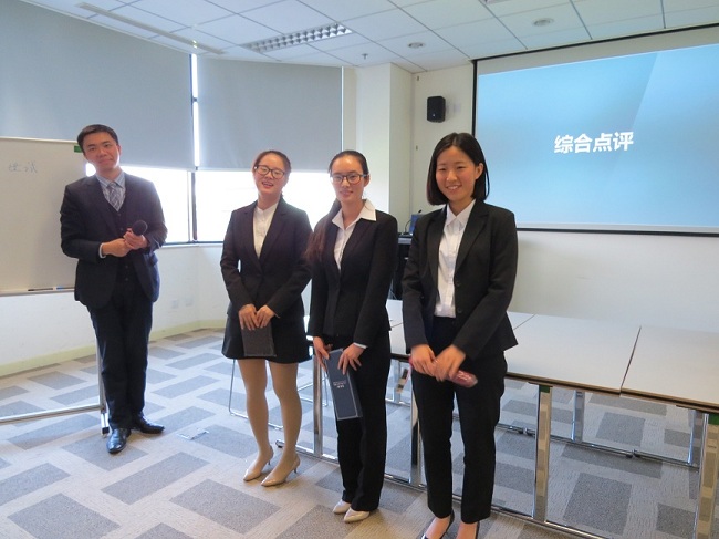 无领导小组讨论是招聘中常用的一种群面方式。参与面试的10名同学有十五分钟的时间阅读一个英文案例,之后就该案例中提出的三个问题进行讨论,讨论的时间为三十分钟。场上同学都积极参与了小组讨论,分别从市场、战略、成本等多个不同的角度发表了自己的见解,最后形成统一的意见,向评委和观众展示案例讨论的结果。这个环节结束后,观众进行了大约10分钟的点评,常远、李宸宇、吴少滨和王垚同学就场上同学们的表现给出了精彩的点评。曾浩老师也进行了更深层次的点评,并建议同学们要加强解决问题的能力和逻辑思维能力。