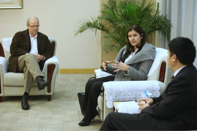 刘勤副院长向来访客人介绍了学院的项目构成和在人才培养所取得的经验,以及与专业协会的合作模式;Nancy Foran女士则介绍了由三大会计师协会合并成的加拿大特许专业会计师协会(加拿大CPA)的发展特色,希望能够保持原三大会计师协会的优势,在发展教育和专业认证项目、商业问题研究、出版专业文献等发面发挥专业影响力。