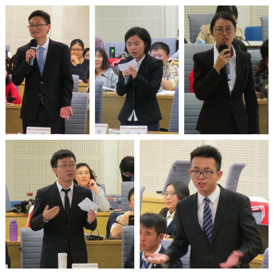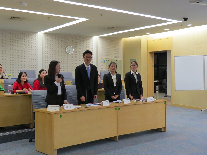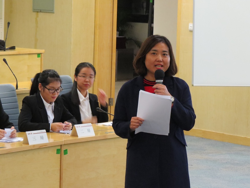 本次初赛共分为两场,第一场为会计一班(正方)VS审计班(反方),辩题为恪守会计职业道德,主要靠个人自觉还是制度保障。首先由正反方一辨分别进行为时一分三十秒的开篇立论,正方认为恪守会计职业道德主要依靠个人自觉,评判标准在于何者更能有效促进从业人员恪守会计职业道德,并从制度保障的无法约束性、个人自觉的更大作用等方面阐明其方观点。而反方则从制度的引导、威慑和保护作用三个方面进行开篇论述。接下来正反方一辨进行一对一的法庭式盘问,攻辨方步步紧逼步步挟持,被攻辩方从容应对据理力争,虽说不是天衣无缝滴水不漏但也是有条不紊并紧扣辩题和己方观点。第五部分的自由辩论环节是辩论赛中最为高潮迭起的环节,“抛砖引玉”、“草船借箭”莫不过如此,真是环环相扣,步步为营。辩手们你来我往,口若悬河妙语连珠,引得在场观众无不鼓掌称赞。