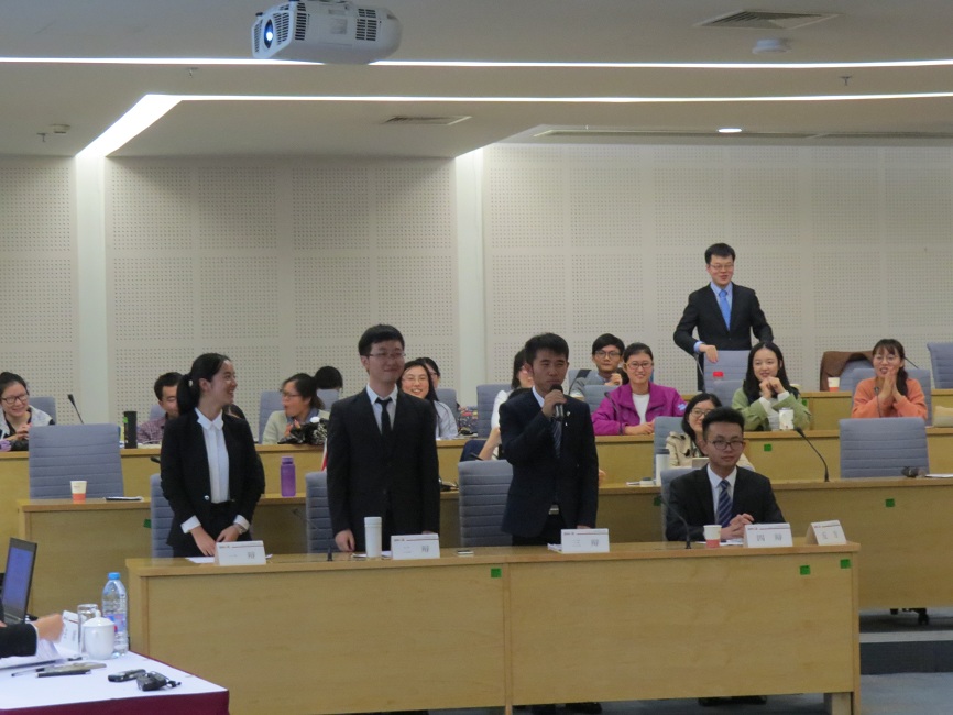 第二场比赛为税务班(正方)VS会计二班,正方观点认为减少企业财务舞弊主要靠预防,而反方则认为主要靠惩治。同样地,首先双方分别进行简洁明了的观点提炼。在此次辩论中,反方辩友就具体的数据和数据的来源对正方辩友展开穷根究底地追问,同时双方辩手在死刑的惩治力度很大,但在死刑法条下依然有人继续作案这个问题上争执不休。紧接着,正方二辩也提出虽然朱元璋惩治贪污力度很大,但是明朝还是贪官污吏最为盛行的朝代之一这一论据,但可惜的是正方辩友并没有就此问题来反问反方辩友。在整个环节中,比赛双方各抒己见,争锋相对,剑拔弩张便能一触即发。最后反方四辨慷慨激昂的总结陈词细数正方辩友论点论据中存在的问题,可谓层层剖析、丝丝入扣。