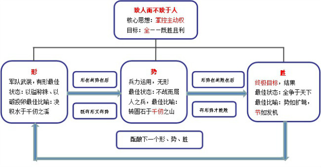 《孙子兵法》是中国最早的一部兵书,已有2500年历史,历来备受推崇,《孙子兵法》已不仅仅是一部兵法,在战争、竞争、哲学、生活、文学、逻辑等多个领域堪称经典。《孙子兵法》的核心思想是“致人而不致于人”,实现这一核心思想的基础是“形”“势”“胜”。