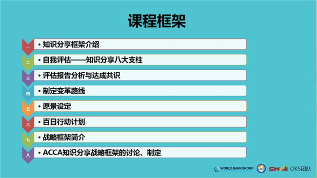 机构知识分享从何而来?作为知识交流的促进者,世界银行正在积极转向“解决方案银行”,将问题解决的多元需求与世界各地成功经验紧密相连。世界银行领导力、学习与创新部(LLI)知识中心团队开发出“机构知识分享能力建设”项目(Organizational Knowledge Sharing, 简称OKS)。上海国家会计学院与世界银行保持着密切联系和紧密合作,在2015、2016年的两年内,合作展开了面对内部师资员工团队的五期系统培训和三期TOT(Training of Trainer)培训,以期大力支持与推动亚太区域内知识机构的知识分享能力建设,推动各组织的可持续发展。