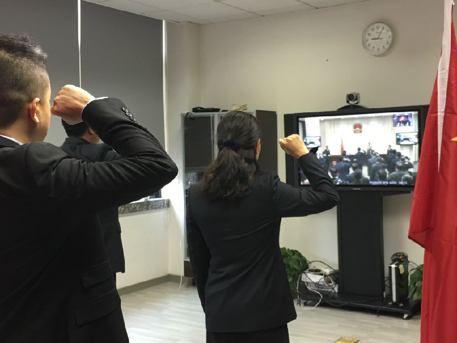 在庄严的宣誓仪式上,宣誓人右手举拳,郑重承诺维护宪法权威、履行法定职责、恪尽职守、廉洁奉公、自觉接受人民监督。宣誓仪式结束后,学院新提拔干部纷纷表示,一定牢记誓词,结合财政工作实际,忠于宪法、遵守宪法、维护宪法,做好表率。