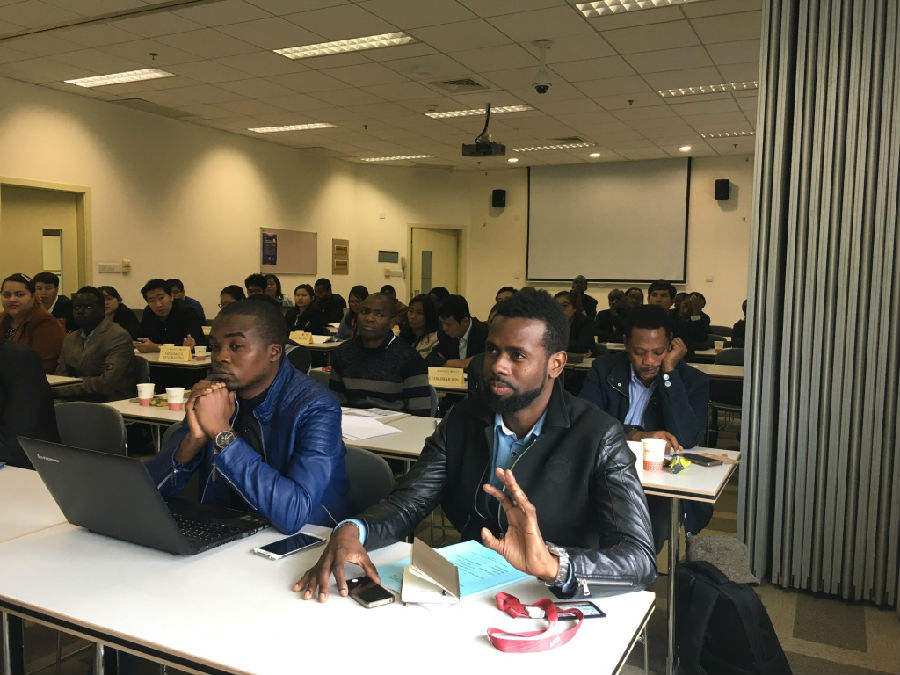 张武先生根据自己多年在职业经理人才搜寻与培训的经验,向留学生们分享了职业成功的秘诀“T.O.P.”。T代表Talent,即个人智识和才能;O代表Opportunity,机遇;P代表Passion,对工作的激情与动力。在这三个要素中,才能和动力是内因,机遇是外因。李涛先生和留学生们分享了为阿里巴巴、亚洲基础设施投资银行等企业和金融机构做高官人才搜寻和培训的一些经历。李总鼓励学生们,无论是在公共部门还是私营部门,要怀抱远大志向,目光放向长远,无论何时何地,做好职业规划和充分准备。一旦机遇来临,紧紧抓住不放松。