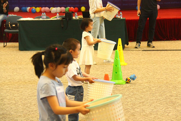 上午的家庭互动游戏在工会姚凡老师的带领下,全场热情高涨,赚足了小朋友的笑声和掌声,“夹球跑”和“定点投篮”考验了家庭的默契度,“几块钱”则考验小朋友反应能力,“抬花轿”更是比拼家长的体力和意志力,孩子们在欢声笑语中拉近了彼此距离,更融入了SNAI这个大家庭。