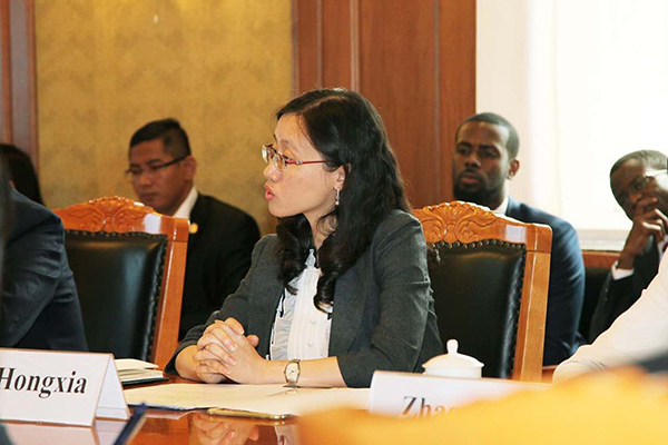 李红霞副司长对我院留学生的到访表示热烈欢迎,并高度肯定了我院积极主动承办发展中国家硕士项目的重要战略意义。她表示,AFDI是亚太区域财金合作最重要、最成功的成果之一。以AFDI为平台,在各方的支持和努力下,发展中国家硕士项目自启动以来取得了积极进展。首批留学生多数来自发展中国家财政部和央行等政府机构,此次现场教学将为留学生开拓视野、深入了解中国改革发展成果提供良好契机。李红霞副司长指出,中国取得巨大的发展成就,离不开改革与对外开放。财政部积极参与对外财金交流与合作,开展财税体制改革,为中国改革开放大局做出了积极贡献。作为世界上最大的发展中国家,中国在发展进程中与其他发展中国家一样面临许多共同的挑战和机遇,希望通过交流分享各自发展经验,促进共同发展繁荣。