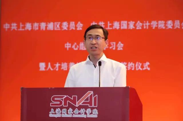 李扣庆院长首先感谢青浦区多年来对学院发展的强有力支持,学院也在努力为青浦打造一张国际名片。青浦近年来的发展有目共睹,青浦速度彰显青浦理念。与此同时,我们也要清醒地认识到,青浦区和学院未来发展均面临诸多挑战。技术进步、全球化发展和深化改革三股重要力量不断重塑整个社会,新旧动能转换意义重大且迫在眉睫。推进动能转换的关键在人才,人才问题的关键在赋能,赋能则需要集聚潜能、提升潜能和释放潜能。我院与青浦区开展人才培养战略合作,就是聚焦人才赋能,努力为青浦区动能转换和产业升级提供智力支撑和人才保障。李扣庆院长表示,此次人才培养战略合作协议签约和党委中心组联组学习必将成为学院与青浦区合作的新起点,区院合作必将打开新的篇章。