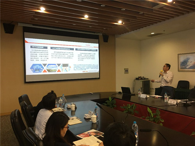 随后,财务资产部谢冬松副主任就对方感兴趣的几块内容作了简要的介绍。汇报内容主要围绕财务会计科目设置,预算的编制、执行与管理,内控建设以及财务信息化建设等模块展开。谢冬松副主任重点介绍了学院近几年在财务信息化方面所取得的成果。去年10月我院新的综合业务平台上线,目前项目一期财务模块已验收完成。谢冬松副主任主要介绍了综合业务平台中预算管理、合同管理、报销管理、课酬劳务费管理四个方面。