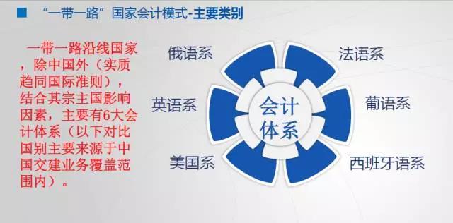 要讲会计准则,整个在“一带一路”国家也好、在全球也好,要研究各个国家的会计准则,首先要了解大体上这些国家的会计准则的一些特点,如果我们把每一个国家都单个拿出来,都不一样。但是通过我们的实践来看,还是有相当一部分国家有很多的共性在里面,这个共性也根据我们自己的实际情况进行了一些分类,我们也借鉴了国际上通用的一些权威人士对于国际会计模式的分类,我们都进行了借鉴。