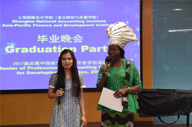 (撰稿:马洁薇;摄影:角度)7月6日晚,我院首届外国留学生的毕业晚会在学院远程信息楼多功能厅举办,我院党委书记、院长李扣庆以及商务部培训中心徐凯处长出席晚会并致辞,我院易宏勋院长助理、部分助教、和AFDI员工参加了晚会。