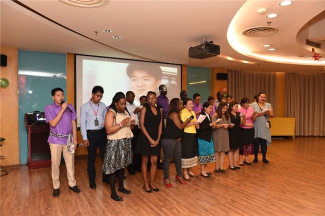 晚会期间,徐凯处长为2015级留学生颁发了商务部证书,SNAI舞蹈队、各国留学生以及AFDI工作人员,依次为大家献艺。晚会的最后,李院长还即兴为大家演唱了一首《少年壮志不言愁》以表达对留学生们的美好祝愿。