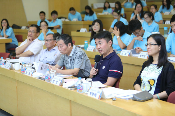 主持人对考评专家及考评流程进行简要介绍后,各小组依次上台对自己课题的研究成果进行展示讲演,各展风采,考评专家对论文进行问答评议,提出意见。考评结束后,考评专家组进行评议并填写结业考评表决票,主持人代考评专家组组长宣布考评决议,全体90名研究生顺利通过结业考评。