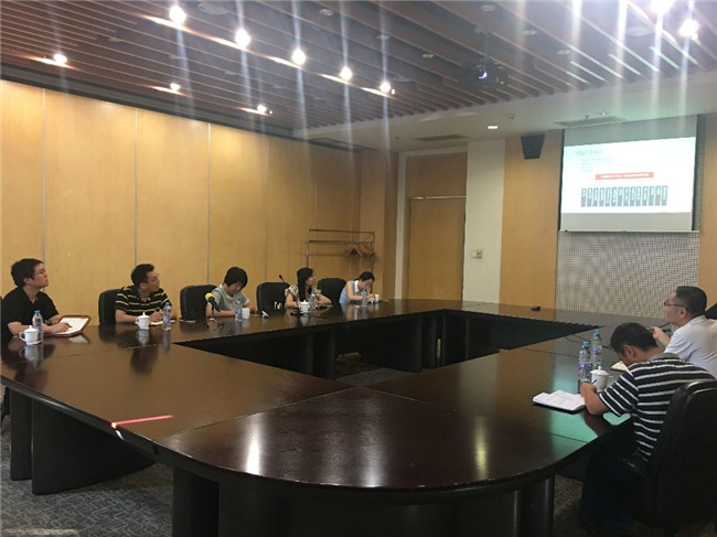 谢冬松副主任首先对童总监的来访表示热烈欢迎,随后从学院的基本情况、综合业务系统、财务模块功能、财务模块实施效果等对方感兴趣的内容作了介绍。双方边交流,边探讨,就其中的预算编制、以一个培训项目为例的全方位管控,线上报销的流程和审批过程、综合业务平台二期拟上线的报表系统选择等内容,谢冬松副主任和胡劲波老师都展开做了介绍。