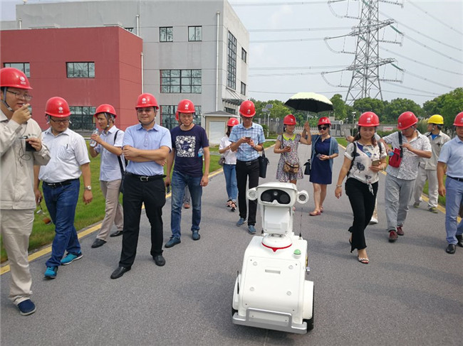 在练塘站现场教学活动中,毛博士还带领大家观摩了巡检机器人的现场巡检工作。机器人代替人工,大大减少了人工劳动,并提高了巡检工作的安全性,提高了巡检质量,是国网上海电力在特高压变电站运维方面运用高科技机器人代替人工劳动的积极探索和大胆尝试。