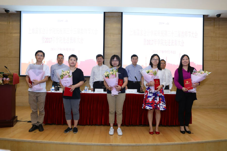 延续近年教师节的传统,院领导向在院忠诚服务十周年的员工们颁发纪念奖杯,他们与学院风雨同舟、倾情奉献、见证了学院繁荣发展、为学院发展付出了美好的青春年华。教务部赵婷老师作为代表,以“传承、感恩和成长”作了精彩发言。