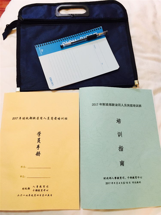 2017年9月4日至15日,2017年财政部新录用人员岗前培训班在河北涿州培训基地如期举行,学院七位新员工参加此次培训。为期两周,岗前培训从不同的模块对所有新入职员工进行入职第一课。执行力与团队协作能力培养,理想信念与职业道德教育,宏观形势与财政改革任务讲解,依法治国与总体国家安全观教育,财政职能及相关制度讲解,综合能力培养理想信念与职业道德共六大模块逐步展开,旨在提高财政部新录用人员的履职能力和综合素质,增强新入职人员的政治意识、大局意识及核心意识,帮助指导所有新员工尽快完成身份转变,顺利开启工作新征程。