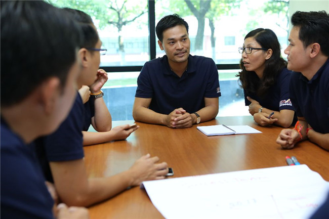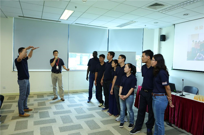 平衡杆游戏体验团结就是力量。在培训师的指导下,留学生踊跃挑战平衡杆游戏。多次游戏尝试失败后,留学生们积极讨论解决方案,总结游戏失败经验,最终发现只有当留学生齐心协力,凝聚力量,才能确保平衡杆成功升起。相信本届留学生将营造一个团结齐心、积极向上的集体。分组讨论展现各国文化风采。留学生们随机分为三个小组,通过热烈的小组讨论,确定各组队名、队徽和队歌,并在小组长带领下上台展示。展示现场精彩纷呈,留学生们奇思妙想,载歌载舞,充分展现了各国各大洲的精彩文化。校园定向走近SNAI校园。校园定向地点包括了留学生办公室、图书馆、不做假账雕塑、诚信之鼎等SNAI校园地标及与留学生校园生活息息相关的场所。通过校园定向活动,留学生们迅速熟悉了SNAI校园环境,增强了对校园文化的认同感和归属感。