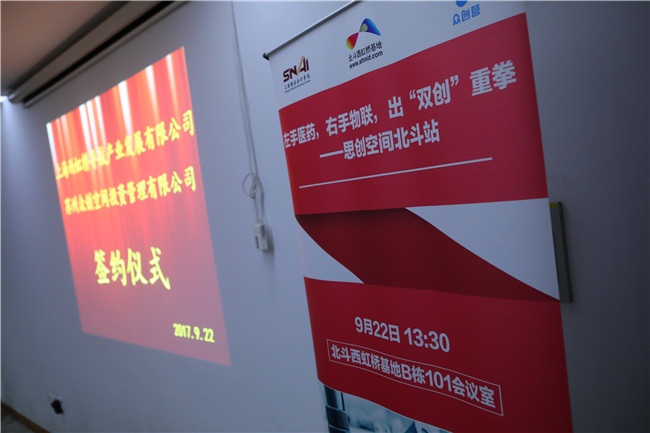 9月22日,由上海国家会计学院主办,中国北斗产业技术创新西虹桥基地、苏州众创空间投资管理有限公司、上海东创营众创空间管理有限公司共同协办的第三季SNAI思创空间双创项目路演活动在北斗西虹桥基地成功举办。活动中,举行了中国北斗西虹桥基地与苏州众创空间投资管理有限公司的签约仪式。同时,与会嘉宾还参观了园区,对这一国内顶尖的北斗产业园区有了更加切实而深入的了解。SNAI思创空间的策划执行负责人、上海国家会计学院推广发展部副主任傅秋莲、上海西虹桥导航产业发展有限公司总裁薛杨、上海国家会计学院EMPAcc校友、苏州众创空间投资管理有限公司董事长刘飞以及来自杭州岱江信息技术有限公司、杭州灿唐科技有限公司、苏州人人基因科技有限公司、上海物景智能科技有限公司、上海雄影农业技术有限公司、上海道声广告传媒公司的六家创业团队出席了本次活动,从业于投资、医疗领域的三十余位校友也莅临现场与创业团队进行了深入的交谈与接洽。