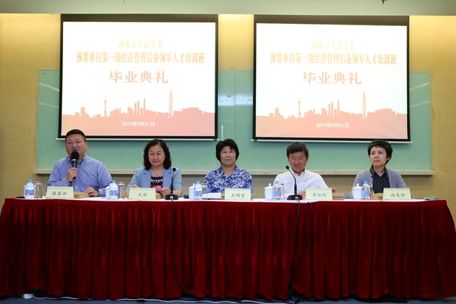 After a total of six trainings in the last two years, the first Leading Economic Management Reserve Talents Program for the National Health and Family Planning Commission (NHFPC) budgetary organizations is successfully completed recently. Deputy Inspector of the Finance Department of NHFPC Wang Mingxia and SNAI President Li Kouqing attended the graduation ceremony.