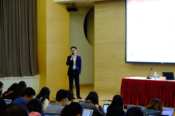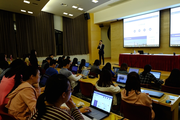 (撰稿:丁师连;摄影:付睿)为了使在校研究生更为有效地利用国泰安CSMAR数据库进行科研,2017年10月23日晚,研究生部与学院图书馆在第三教学楼150报告厅联合举办了国泰安数据库现场培训。本次培训主讲老师是国泰安专业培训师苏飞博士。苏博士从国泰安CSMAR数据库概况、使用技巧和操作展示等方面为做了讲解,并指导同学们获取和分析上市公司数据的方法。