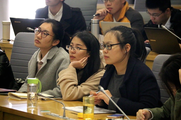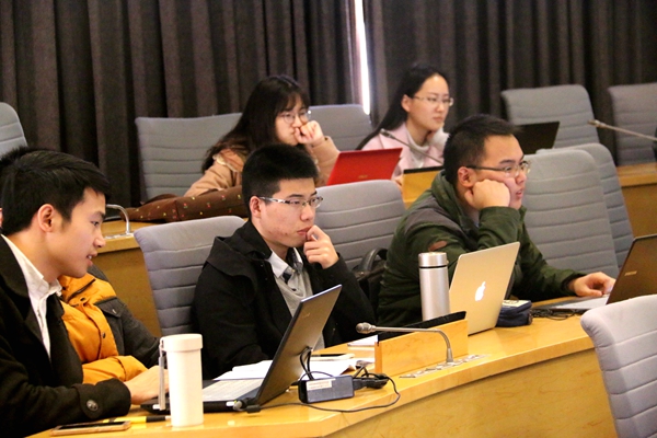 主讲人詹烨老师首先介绍了万得客户端首页的各个功能模块的基本功能,并以两个具体的图表为例为同学们演示了检索相关信息、用excel调用利率数据等功能的具体操作方法。随后,詹老师介绍了调取使用经济数据库、研报平台等数据库中数据的具体方法,例如,在研报平台的“全部研报”界面,运用筛选功能,搜索大于二十页的深度研报,即可得到理想的结果。此外,也可通过作者层面的搜索得到相关的研报。若对具体的某家公司进行分析,可在股票界面中运用F9快捷键进入,利用“关系网”的功能,迅速找到与该公司相关的各类数据,在“大事提醒”功能中,用时间轴的形式展现出公司的发展历程。
