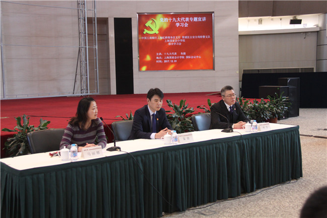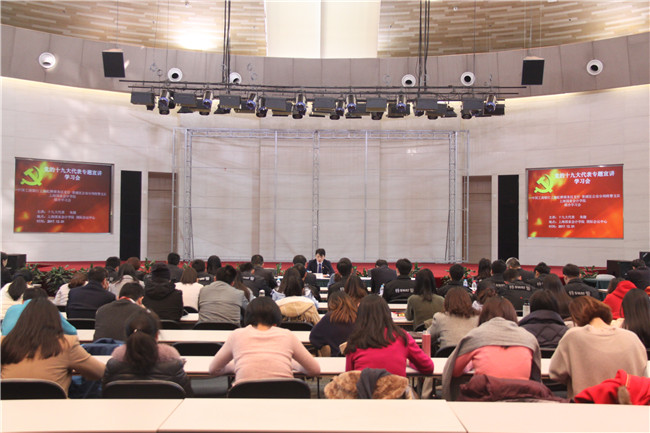 为深入学习贯彻党的十九大精神、推进“两学一做”学习教育常态化制度化,12月1日下午,学院党委与中国工商银行上海虹桥商务区支行、青浦区公安分局特警支队开展联合学习,特邀党的十九大代表朱捷同志宣讲十九大精神。我院党委中心组(扩大)成员、各部门员工、全日制研究生党员代表,以及中国工商银行上海虹桥商务区支行员工、青浦区公安分局特警支队成员共190人参与了本次学习会。