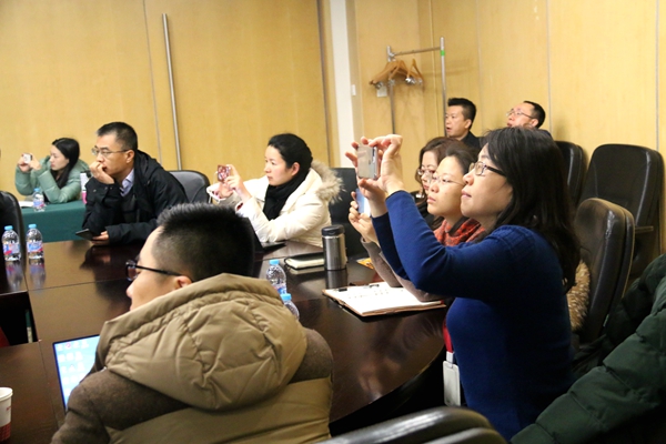 黎教授说到以往教师上课需要有固定的场所、固定的时间,以及多媒体和投影屏幕等设施;有了智能手机平台之后,教师可以随时随地使用手机进行备课与上课。他为大家用手机微课堂的方式演示了如何使用微信平台搜集资料,如何进行快速输入等工作中的实用工具。
