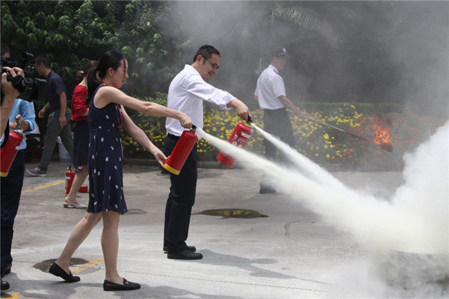 根据活动安排,安保部经理周蕾又对全体人员普及了灭火器材的使用。期间,结合实物展示,学院很多员工踊跃参与了干粉灭火器和二氧化碳灭火器的实战操作。