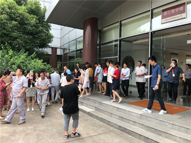 (撰稿:施朝阳;摄影:施朝阳、物业)为进一步落实《消防法》和《上海市消防管理条例》的有关规定,结合市消防委关于《2018年消防安全重点单位“零火灾”创建工作实施方案》(沪消防委[2018]21号)要求。2018年6月26日中午12时30分,后勤部在第三教学楼马蹄形教室(三)组织了消防联动疏散演练,学院党委委员卢文彬副院长、院内各部门的老师及驻院物业部分员工参加了此次活动。