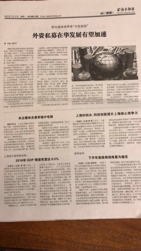上海科创办:科技创新提升上海核心竞争力【2018年7月10日,上海金融报】