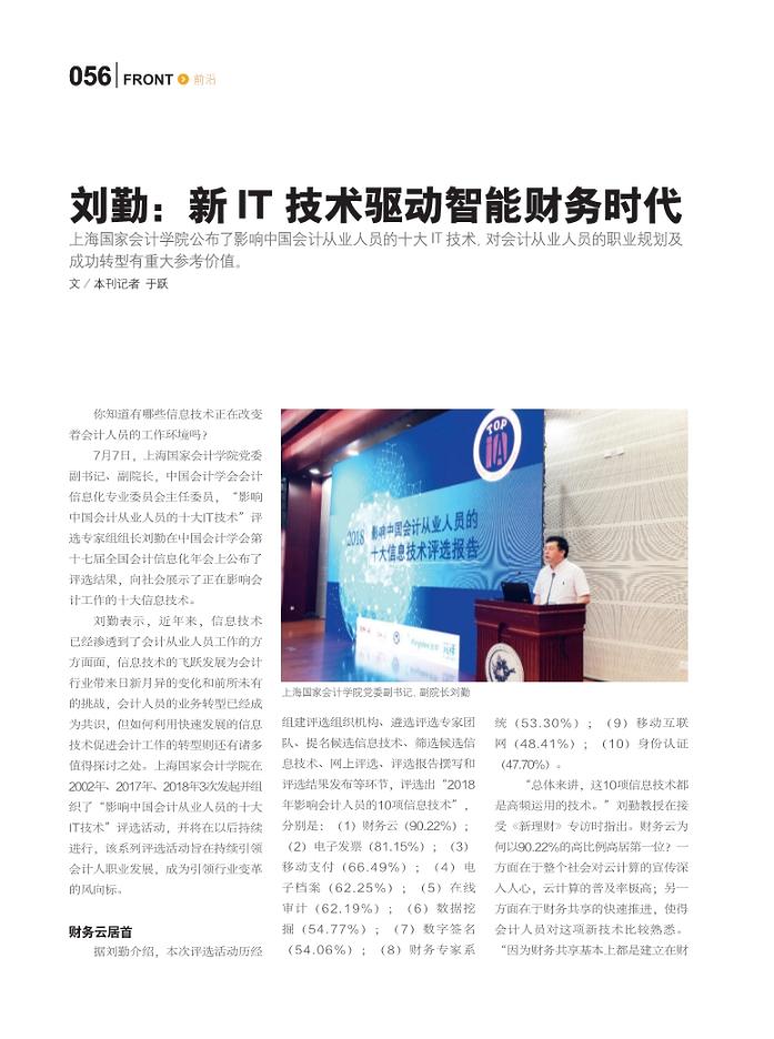 刘勤:新IT技术驱动智能财务时代【2018年8月刊,新理财】