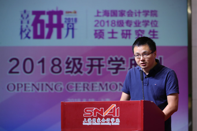 教研部宋航副教授代表全体研究生导师恭喜全体新同学通过层层选拔来到学院,并基于在上海国家会计学院10年的教学和指导经验提出了两个方面的建议。首先是从思考“是什么”到思考“为什么”的转变。他以准则为例,表示准则并非完美,只有理解了背后的原因才能够更好地理解现象。第二个是希望大家努力,踏实地走好每一步。上海国家会计学院的两年很可能是大家在学校的最后两年,他鼓励同学们珍惜在校时间,不要虚度光阴,因为现在的努力决定了未来可以达到的高度和深度。他以自己指导的三个学生为例,分别阐述了努力、平和、踏实等三种品质的重要性。最后,他鼓励同学们趁风华正茂,把握黄金求学阶段,不负光阴不负青春。