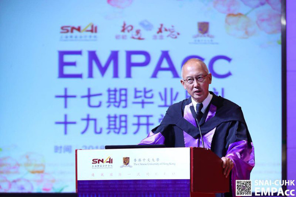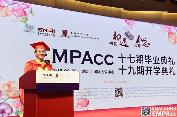 “我们生活在一个激动人心、充满挑战的时代,也是一个呼唤英雄的时代,沧海横流方显英雄本色。时代需要一批又一批的人才把握机遇、应对挑战,助力国家与社会发展。不论是十七期毕业生还是十九期新生都是生逢其时,通过上海国家会计学院和香港中文大学联合优秀项目的两年培养,同学们将拥有更多坚实的资本去迎接人生的新挑战、把握人生的新机会。”李扣庆院长在致辞中说,“在财政部支持下,上海国家会计学院和香港中文大学联合打造的EMPAcc项目在一定意义上开启了中国会计硕士专业学位教育的历史”。