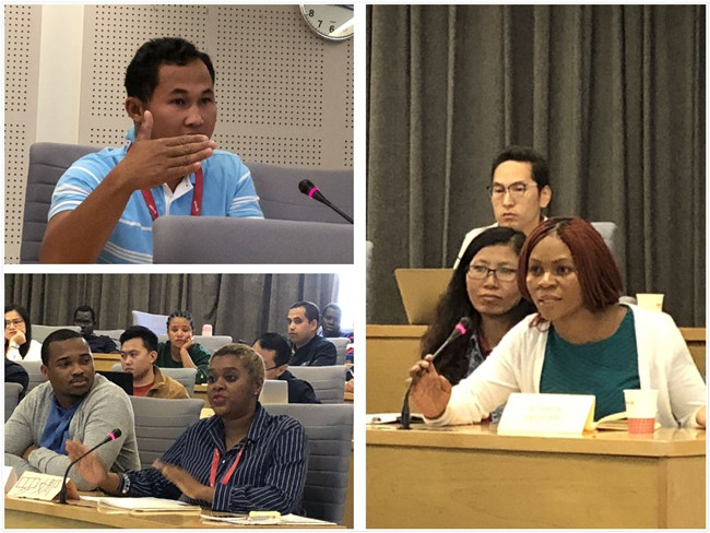 专家演讲结束,留学生们纷纷踊跃举手发言,和三位专家积极交流。来自巴哈马、安提瓜与巴布达、柬埔寨、老挝、南苏丹、马拉维等国的留学生,就如何区分绿色债券与企业社会责任所携带的环保治理要求,如何对绿色进行认证,如何制定全球公认的绿色标准,绿色债券过去几年来爆炸性增长背后的驱动因素和保持持续增长所面临的挑战,亚行在发行绿色债券等方面的经验等问题进行了沟通探讨,气氛友好而热烈。正如专家们总结所说,短期来看,还需在开发统一的绿色指标、标准等方面大加努力,但长远来看,未来随着债券市场的进一步发展,环保内容势必将会被整合进传统债券的定价中。