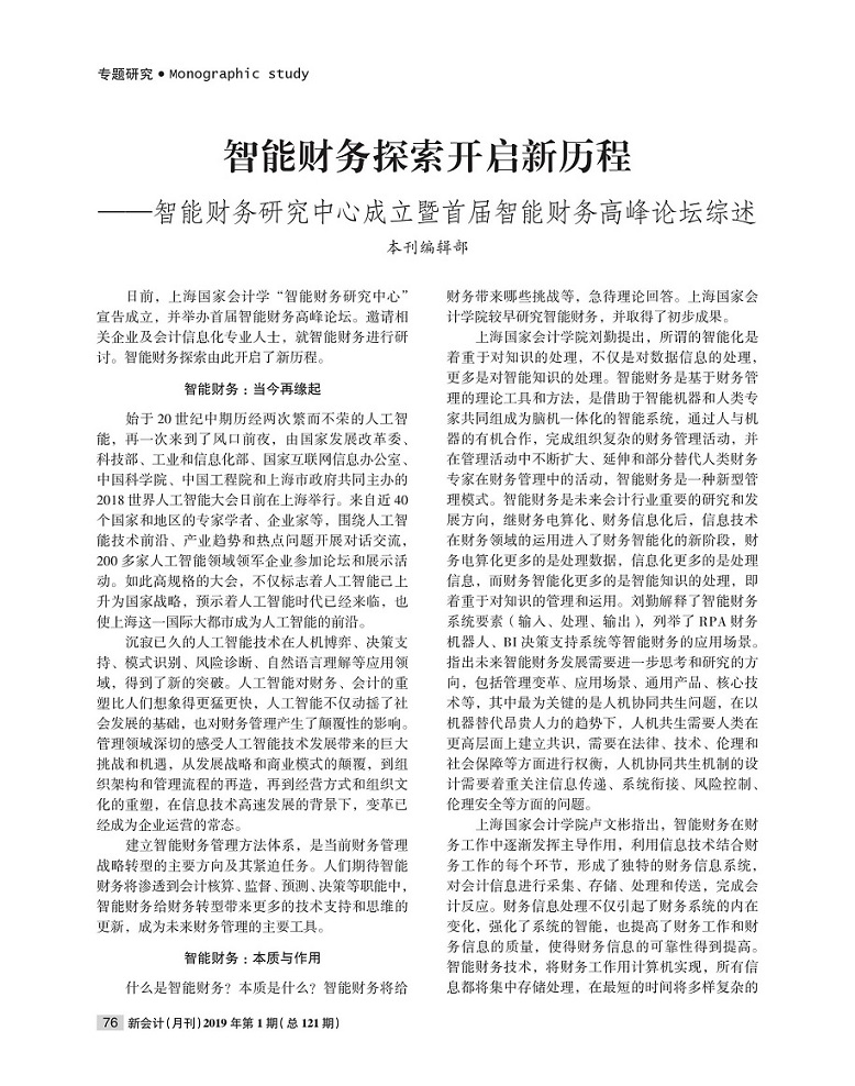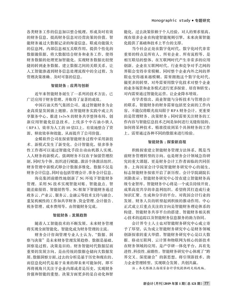 智能财务探索开启新历程【2019年第1期,新会计】