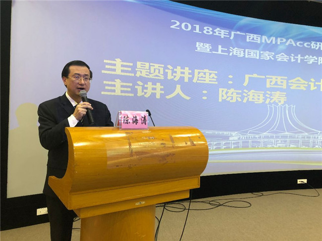 随后,由广西壮族自治区财政厅会计管理处陈海涛处长为大家带来了题为《广西充分发挥拔尖会计人才作用,积极推动“六强”型财政建设深入开展》的专题讲座。“一带一路”倡议的实施为我国会计人才输送提供了重要契机,广西作为边境地区,在服务于“一带一路”建设的会计人才能力构建方面取得了积极成果。会计工作是财政管理的重要基础,会计人才是财政管理工作的有力支撑。陈海涛处长站在广西会计人才培养的高度,总结了七点积极意义和展望。一,积极引领广西行政事业单位预算管理迈上新台阶;二,积极推动广西行政事业单位国有资产管理达到新高度;三,积极带动广西行政事业单位内部控制建设呈现新成效;四,积极推动广西行政事业单位会计信息化建设进入新阶段;五,努力促进广西行政事业单位绩效管理取得新突破;六,努力推动广西行政事业单位政府采购取得新进展;七,做好新时代会计领军人才的培养,对积极推动广西参与“一带一路”建设具有重要意义。陈海涛处长的讲话给在座的“一带一路”国家留学生们带来了很多重要的启发。