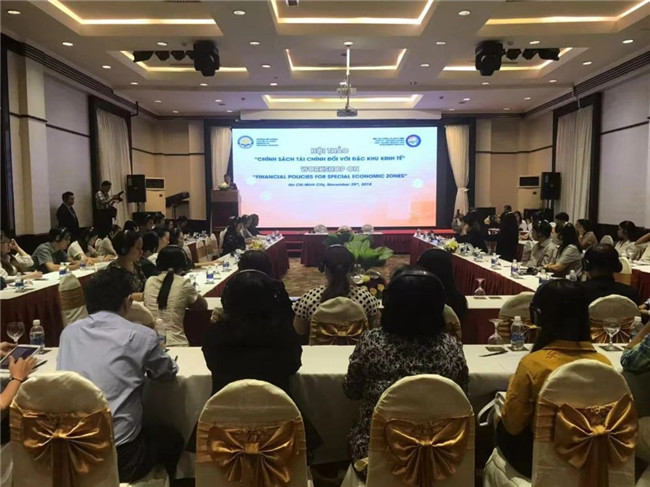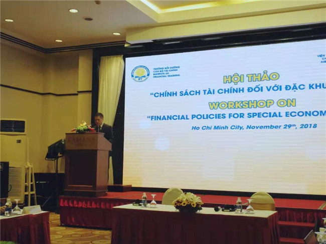 (撰稿、摄影:丁丽娟)11月29日,由我院与越南财政部财政干部学院(IFT)共同举办的中越“促进经济特区发展财政政策”研讨会在越南胡志明市举行。越南财政部财政干部学院黄成厚院长与我院卢文彬副院长出席了开幕式并致辞,来自越南财政部、国家银行、税务总署以及越南外贸大学的近50名代表参加了此次研讨会。